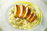 Piščančje prsi s porom in dijonsko gorčico v zrnu
