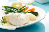 File polenovke z vonjem po rožmarinu, s spomladansko zelenjavo in omako Beurre blanc