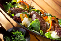 Goveji trakovi na žaru s papriko in solato iz koromača